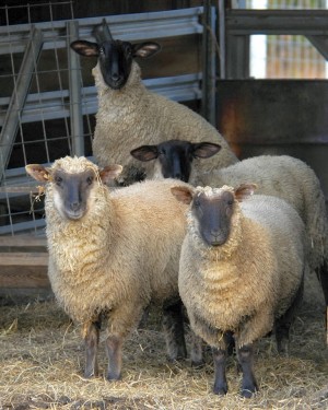 Sheep gazing out of their barn at the Richard's farm outside of Leonardtown near White Point.
